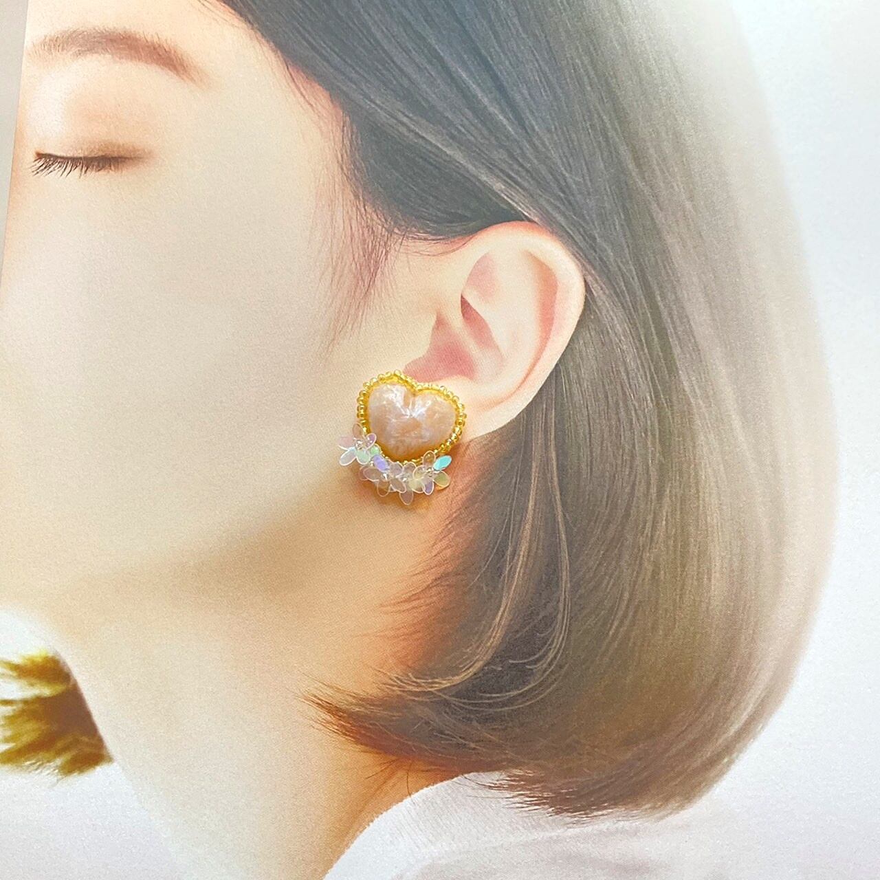 おしゃれ かわいい ハンドメイド 手作り ピアス アクセサリー ハート 花