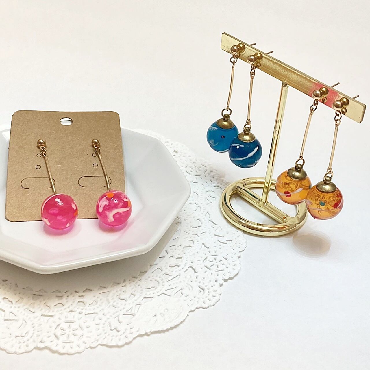 おしゃれ かわいい ハンドメイド 手作り ピアス アクセサリー 夏 浴衣 ヨーヨー